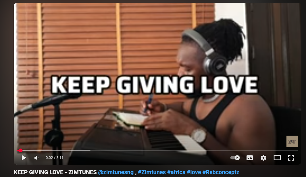 The song "KEEP GIVING LOVE" is a peace song that calls on the entire world, irrespective of race, religion, and every other differences to seek peace and stand for justice and dialogue in order to make the world a better place for peaceful cohabitation.